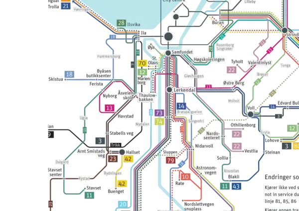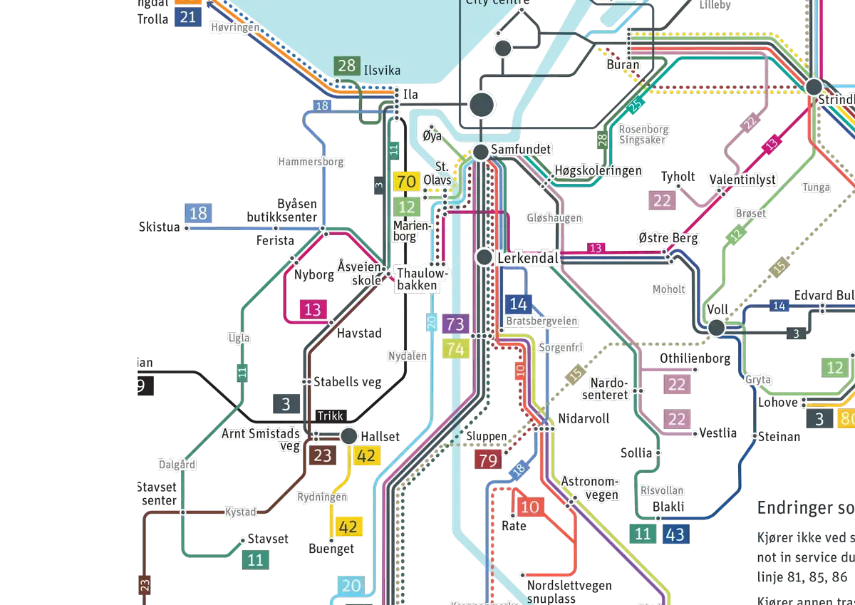 Linje 18-Ferista/Skistua fra Kongensgate opp Vestfarten, med stoppested Trøndelag Folkemuseum.