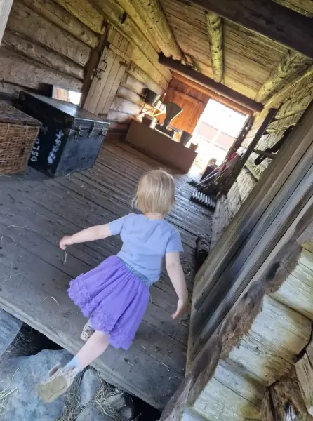I vinkel med dem sto tidligere stallen på gården, også det en stor bygning med høylåve og kjørebru. Fjøset er et kombinasjonshus med kufjøs i vestre del og geitefjøs i østre del. Inne i kufjøset er det også en liten grisebinge. Over det hele er høylåven. Låven er en tradisjonell låvebygning med treskegulv i midten og kornstål på begge sider. Under treskegulvet er det agnhus, og i enden er det vognbu. På låven er det treskemaskin, drevet av hestevandring.