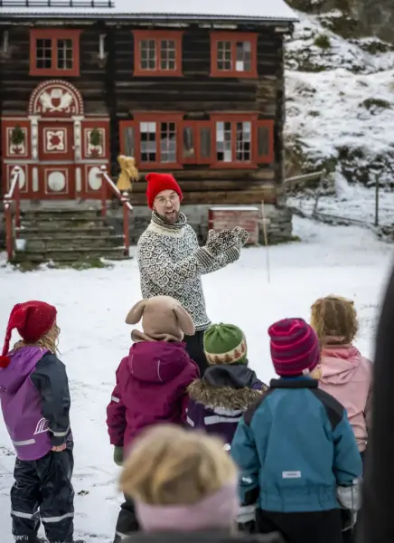 Bli med fjøsnissen og lær om den gamle gården, juleforberedelser og juletradisjoner, og hjelp han med å finne julegrøten.