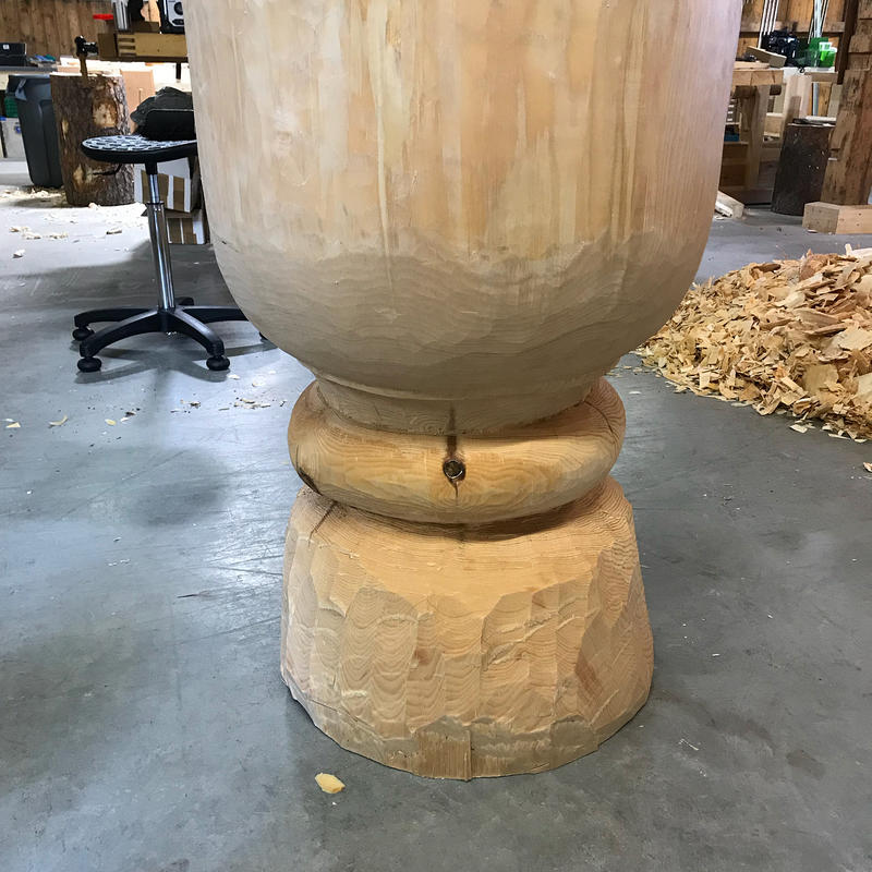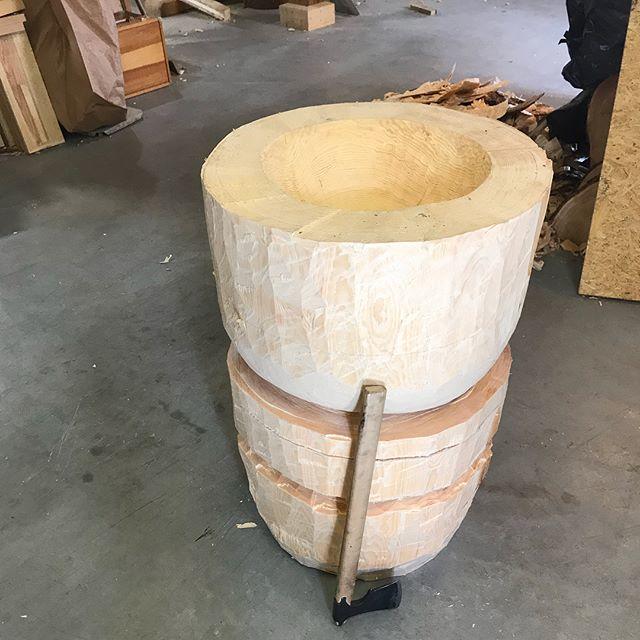 Dilemmaet med tidsplanen opp mot utførelse av arbeidene er at jeg vil gjerne jobbe med formen i ferskt virke, altså stokken må være i rå tilstand. Dette gjør bearbeidingen lett og håndterbar. Særlig uthuling av endeved blir vanskelig når treet har fått tørke. Ulempen er at ferskt virke om sommeren tørker fort og kraftig noe som medfører overhengende fare for kraftige tørkesprekker. I tillegg er fersk ved av furu særlig utsatt for angrep av blåvedsopp som farger treet blått, "blåved". Dette har ingen konsekvens annet enn å påvirke det visuelle uttrykket, men av den grunn vil jeg forsøke å hindre dannelse av blåved. Hurtig og luftig tørk hindrer dannelse av blåved, men taler midt i mot behovet for langsom og skånsom tørk for å hindre sprekker. Og – der er vi altså. Dømt for enten det ene eller det andre.