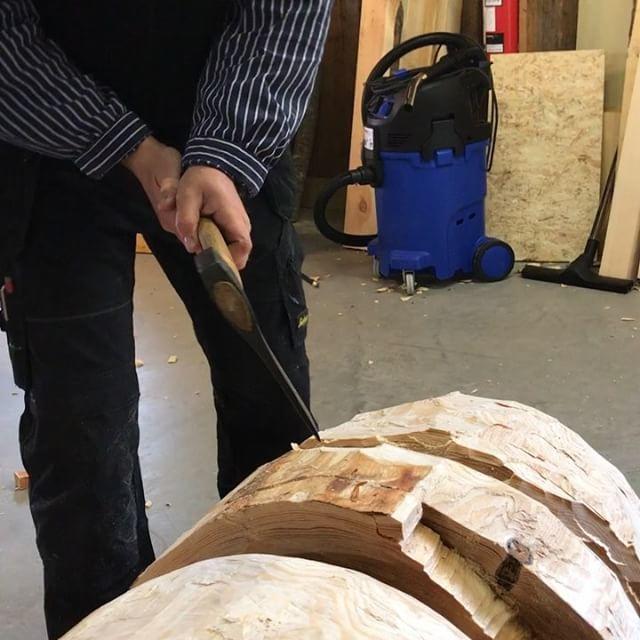 Bearbeiding gjøres med håndverktøy, fortrinnsvis øks, teksle og huggjern.