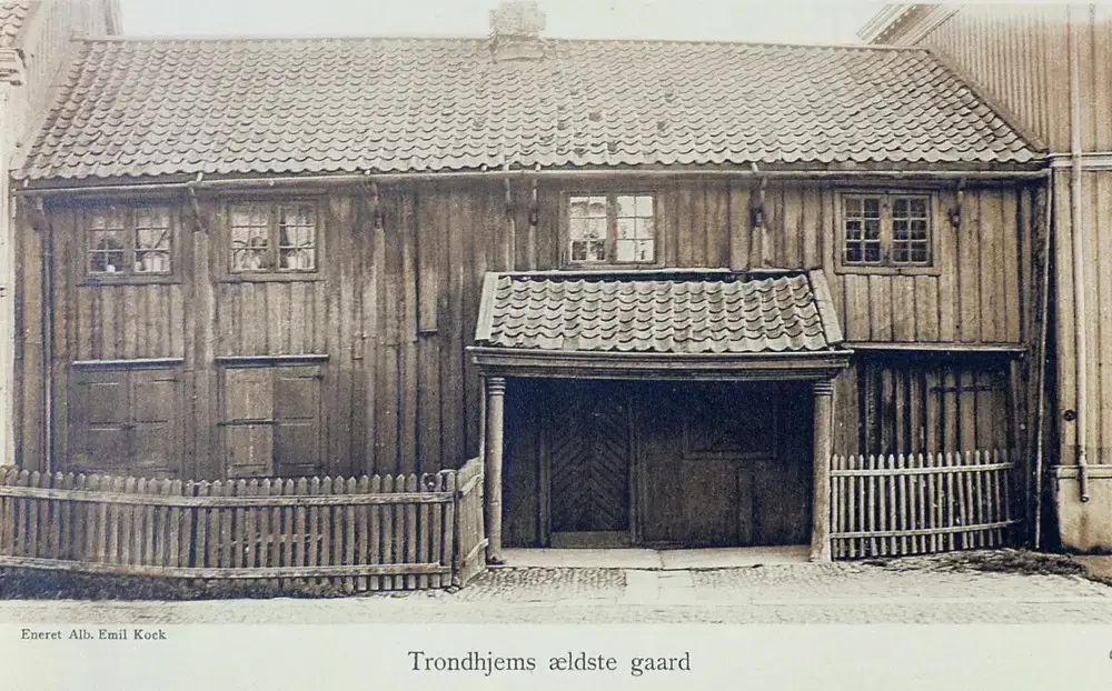 Hovedbygningen ble oppført i 1723 og var et svalgangshus med innkjørselsport i øst. Allerede i 1754 bygde han på gården sidefløyen med dagligstue, størhus, pakkhus og stall. Han fikk også delt av den lille kramboden ved siden av inngangen. Handelen foregikk gjennom luka mot gaten, først senere ble det også lagt inn en disk i gangen.