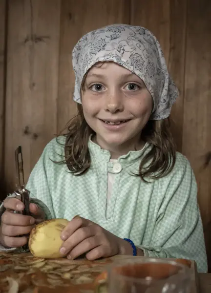 Lyden av mobiltelefoner byttes ut med skoleklokka som ringer og salmesang som klinger. Skal du lage mat må du selvfølgelig til brønnen for å hente vann først. Alle vet jo at suppa smaker best når man har laget den selv. Barn på den tiden måtte jobbe både før og etter skoletid. Arbeidet besto i å hjelpe til med gårdsarbeid for de som bodde der. Eller husarbeid for de som bodde i byen.