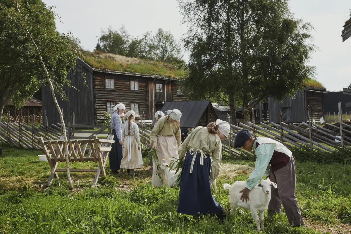 På Nesset bor det en familie som trenger hjelp, da det alltid er noe som må gjøres på gården. Visste du at kua kan drikke så mye som 40 liter vann om dagen? I tillegg trenger den mat og stell. Det samme gjelder grisene. Hvis det blir igjen matrester etter dugurd-måltidet er det bare i legge det i trauet for grisene blir aldri helt mette. Geitene må ha mye høy og kos. Er vi heldige så har hønene lagt nok egg til å lage pannekaker etter en lang dag med gårdsarbeid.
