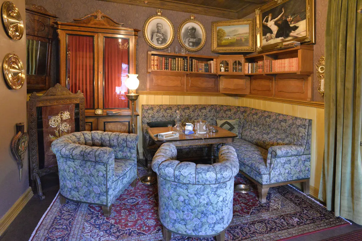Leiligheten har fått nye himlinger, tapeter og gulvbelegg. Dette har medført omfattende snekkerarbeid, malerarbeid og elektrikerarbeid. Leiligheten er utstyrt med Adolf Øiens møbler, supplert med enkelte gjenstander fra museets samlinger. Øiens møbler dekker behovet i de fleste rom. De enkelte værelsene har fått et individuelt preg alt etter hvilken bruk de skal illudere, som fruens kabinett, herreværelse, spisestue, salong etc.