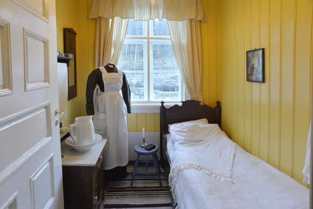 I tilknytning til kjøkkenet finnes garderobe, pikeværelse og spiskammer. Herfra kommer man ut i trappehallen igjen.