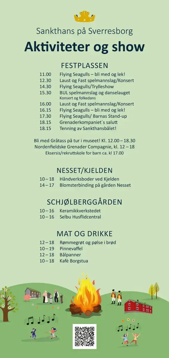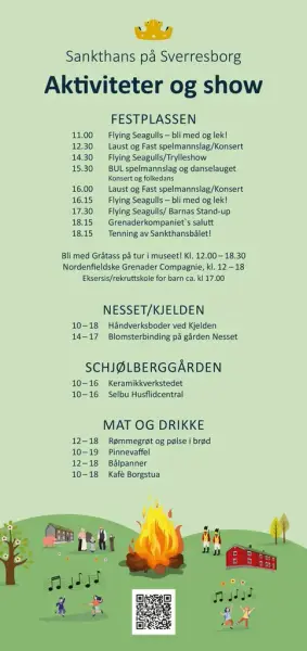 Vi feirer sankthans med et særdeles innholdsrikt sommerprogram, show og musikk på festplassen, og selvsagt Sankthansbål!