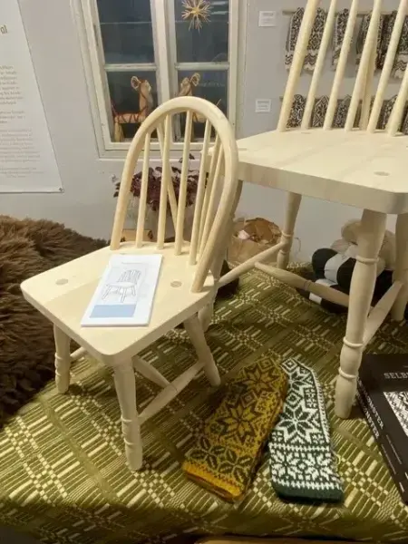 I tillegg formidler vi et lite utvalg lokal husflid, som Budalsstolen, skinn fra lokale bønder og kortreist møbelstoff.