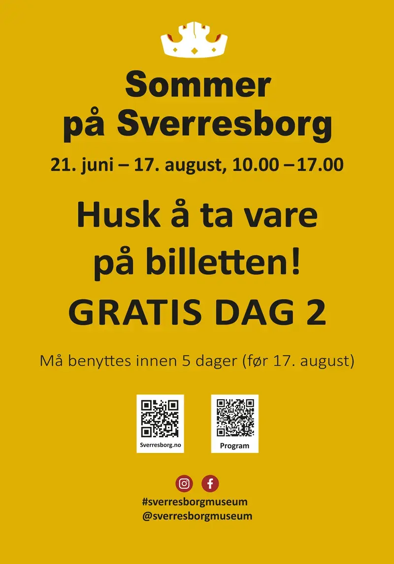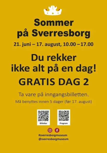 Planlegg din GRATIS DAG 2 BILLETT FØR du forlater Sverresborg! (Tilgjengelig fra 21. juni . Gjelder ikke etter 17. august.)