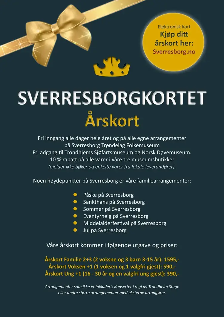 - Adgang til ALLE egne arrangementer på Sverresborg Trøndelag Folkemuseum.