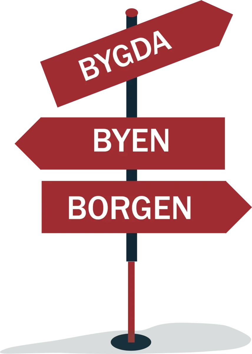 Folkemuseet har delt sitt store område inn i temaene By, Bygd og Borg.