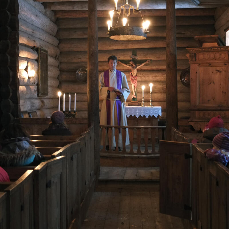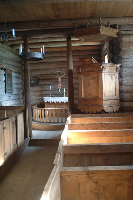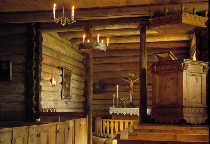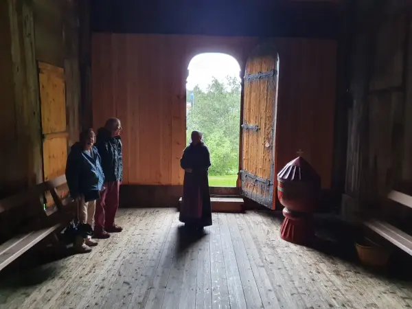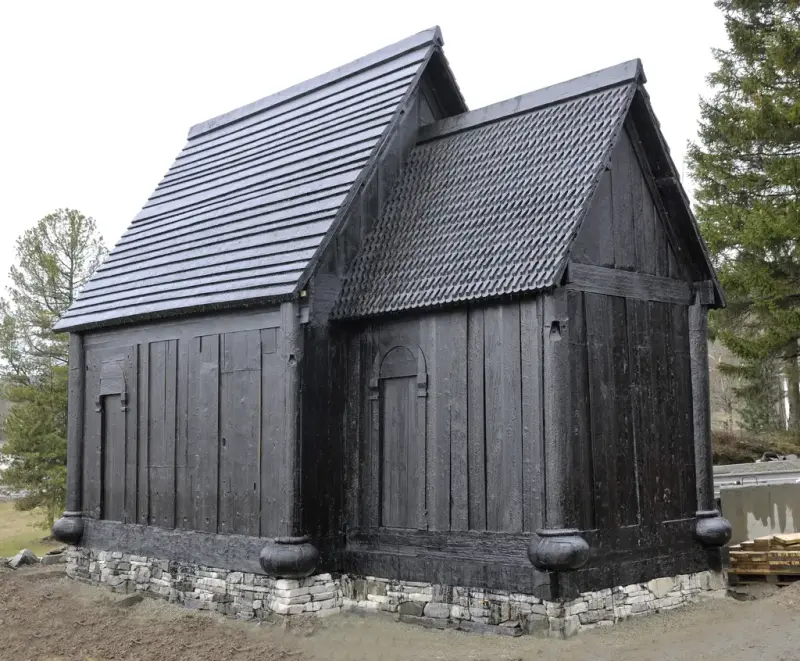 Tømmerkirke fra begynnelsen av 1600-tallet. Den er vigslet og brukes derfor til kirkelige handlinger. Kirka har ikke oppvarming, og belysning skjer kun ved hjelp av batteridrevne lys. Leietaker må selv gjøre avtale med prest, fortrinnsvis presten i sin egen menighet. Det er orgel i kirka, men leietakere må selv skaffe organist. Det er lagt inn noe strøm, og man kan derfor bruke elektriske instrumenter. Kirken kan også varmes opp til lunk før seremoni, slik at den oppleves varmere enn stavkirken. De fleste velger enkel pynting gjerne kun blomster foran kirkedøra, da kirka i seg selv gir en vakker stemning. Det er sitteplasser til ca 70 pers.