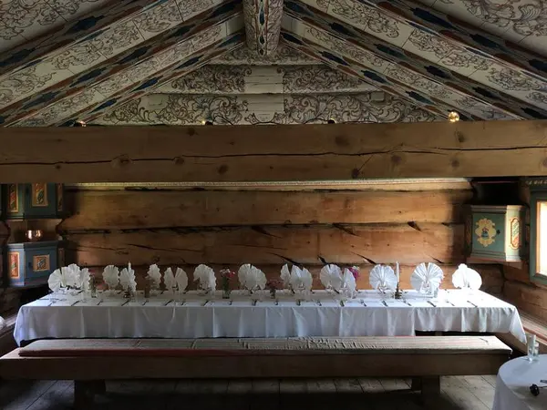 Vikastua rommer inntil 25 personer. Alt etter hvilke type bord oppsett man velger. Ved middagsoppsett får man plass til 18 stk ved langbord. Vi serverer gjerne rømmegrøt, spekemat og god drikke til.